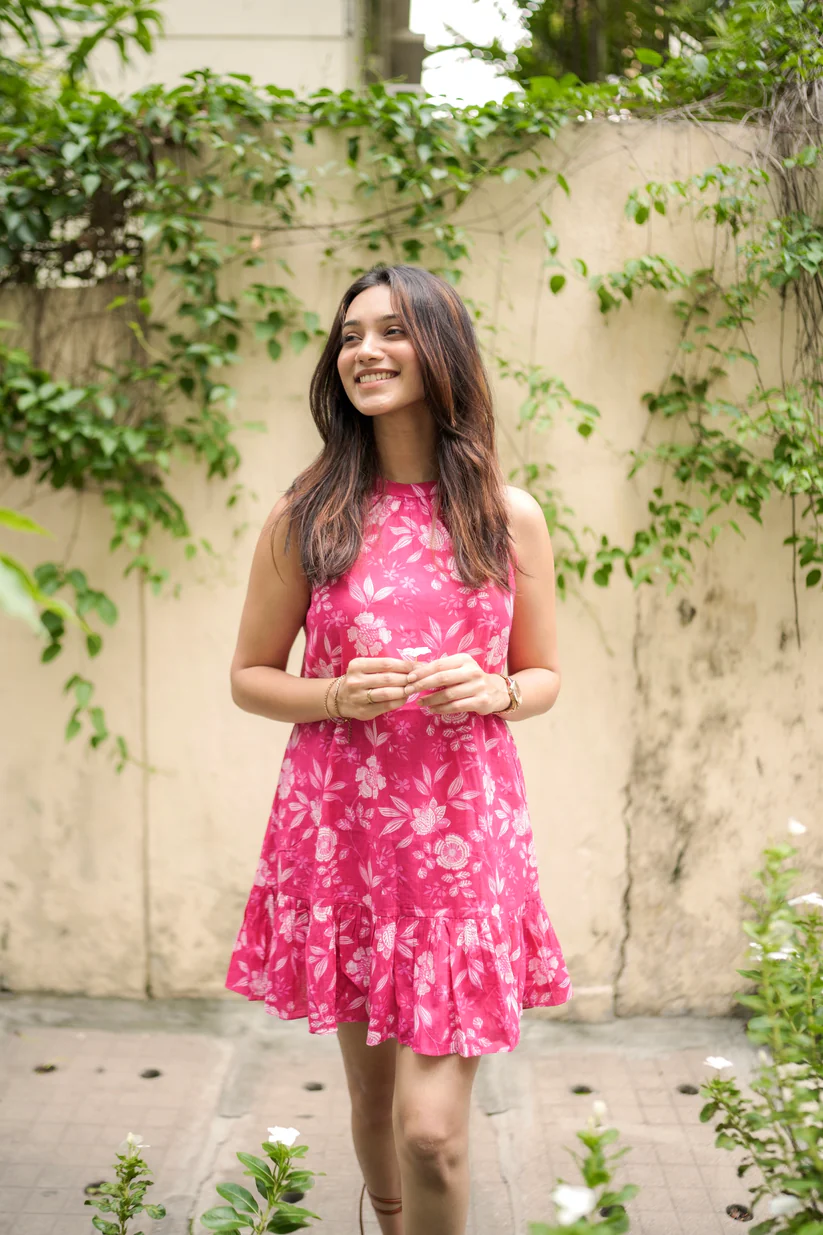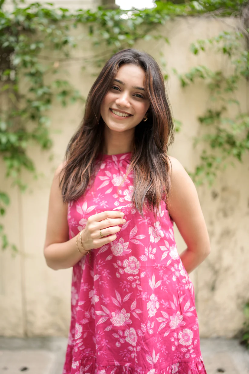 Meet the Gulabi Mood Dress—a true favorite from our founder’s wardrobe. Designed in soft cotton and hand-blocked with delicate florals, this dress captures everything we love about easy, everyday style. Pair with strappy sandals for a relaxed vibe, or dress it up with wedges and earrings for a fresh evening look.